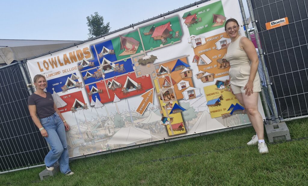 When do you push your holiday aside? With rain in the forecast, I didn’t mind moving my holiday when I was asked if I could create 2 maps for Campsolution-Lowlands. Of course, I still went to take a look when they were being put up.